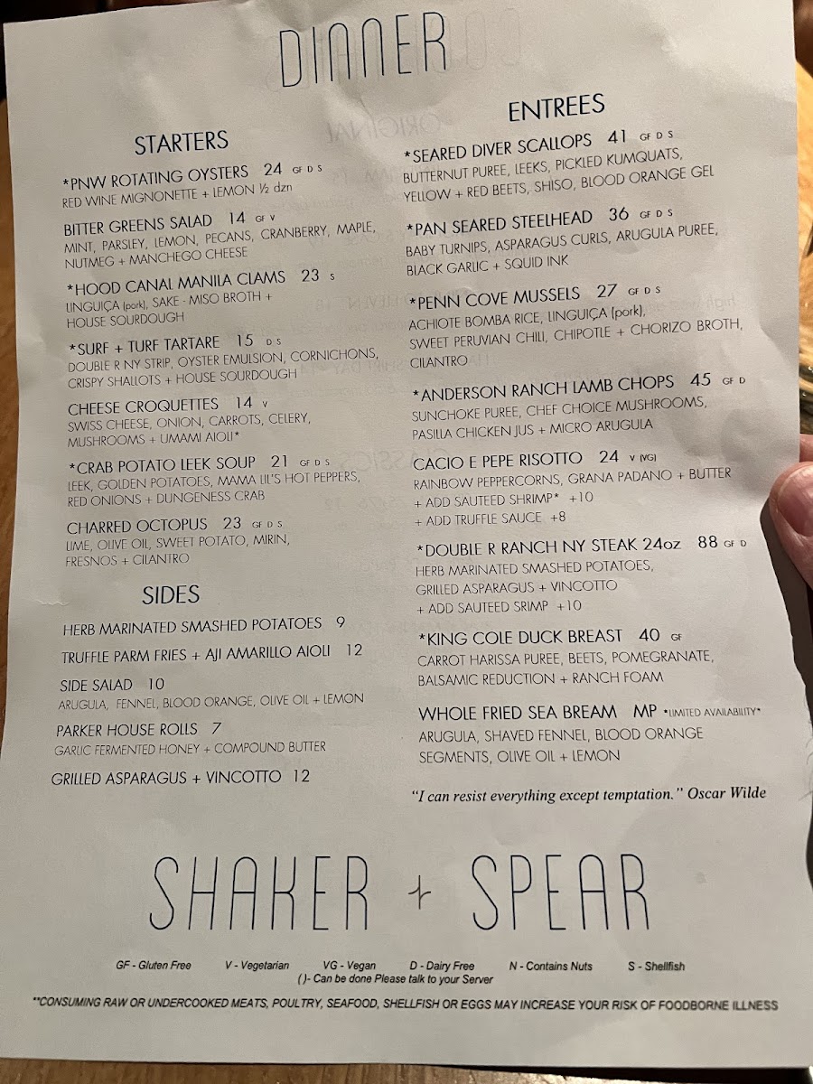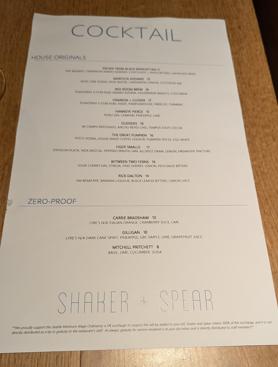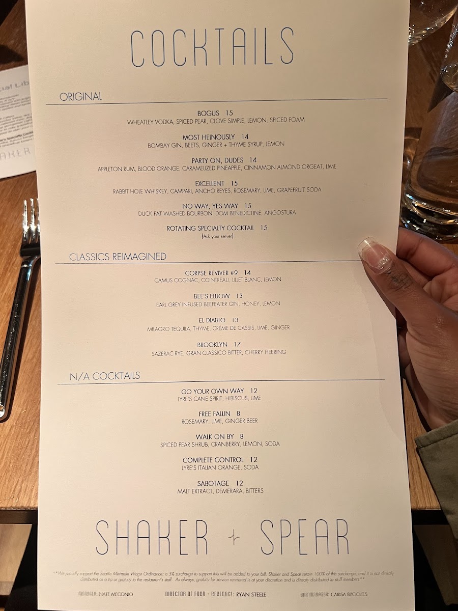 Come explore Shaker & Spear, where fresh seafood meets warm hospitality and an inviting atmosphere, creating the ideal setting for an unforgettable dining experience in Seattle!